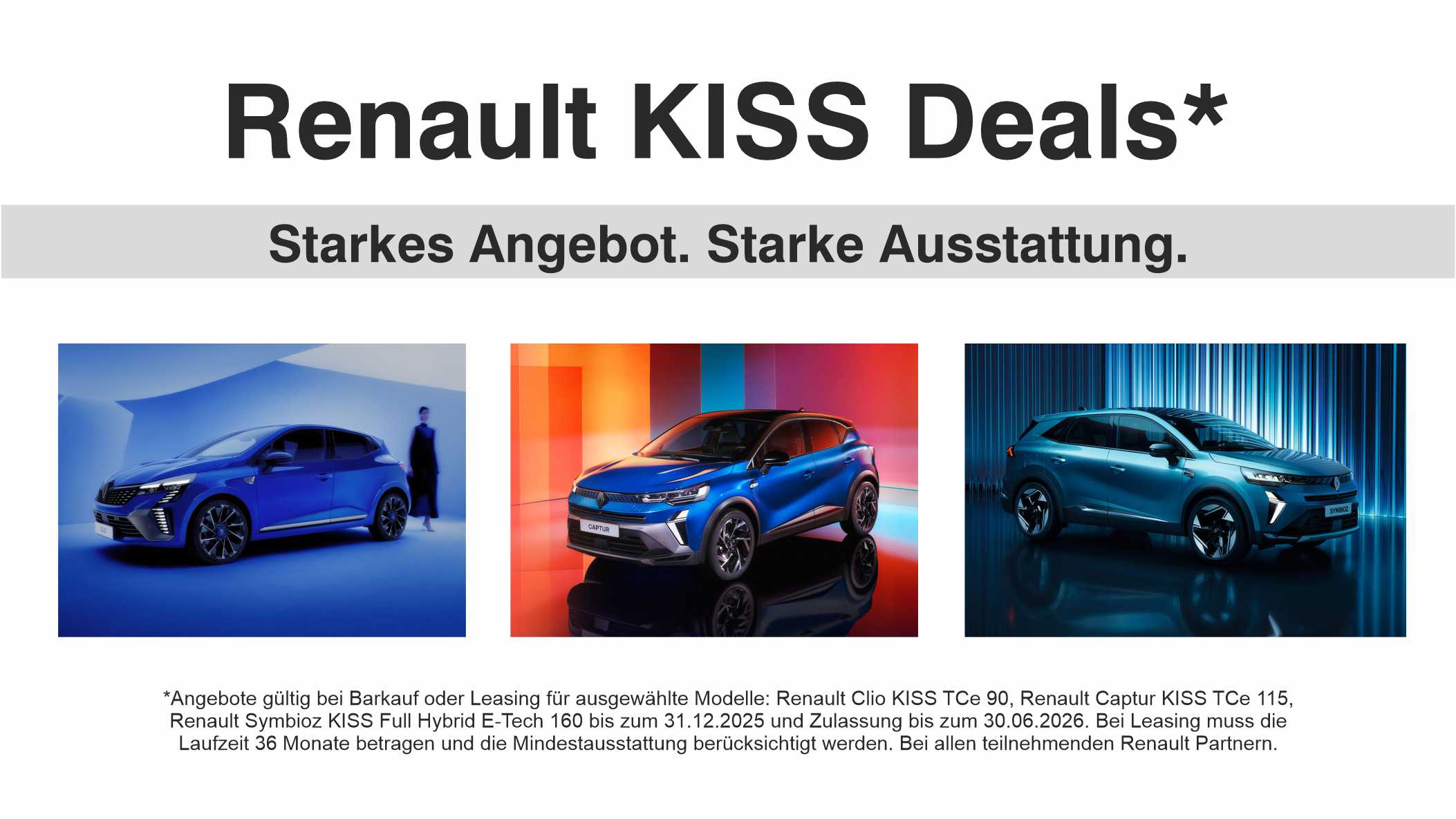 Die Renault KISS Sondermodelle** Clio, Captur und Symbioz jetzt zum attraktiven Barpreis oder besonders günstig leasen!